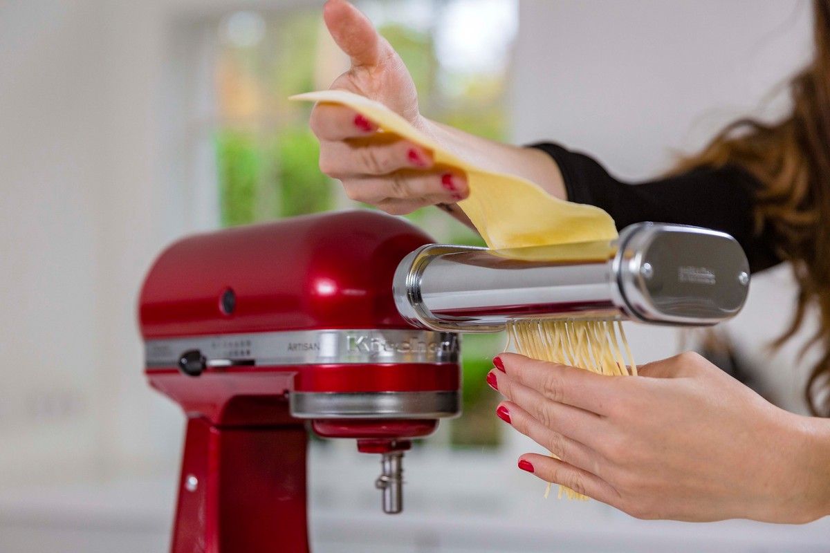 После того как вы получили тонкие и ровные листы теста, можно переходить к нарезке. У вас есть два варианта: использовать ручные инструменты для нарезки пасты или наши насадки-резаки для приготовления спагетти, феттучине и других видов лапши разной толщины (продаются отдельно). Просто установите выбранную насадку на стационарный миксер KitchenAid, и вы получите идеально ровные нити пасты.